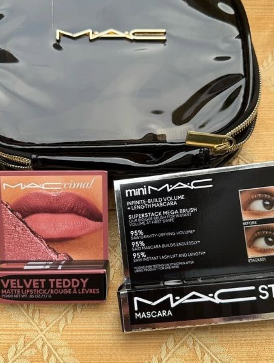 ست کیف آرایشی مک شامل رژ لب Velvet Teddy و ریمل MACStack